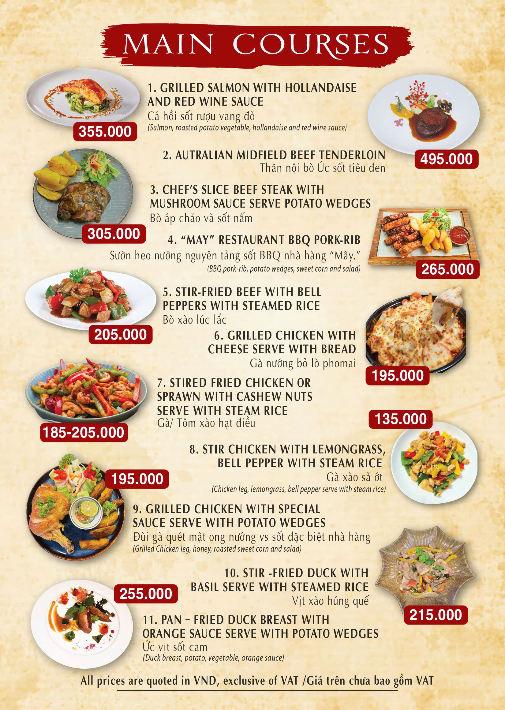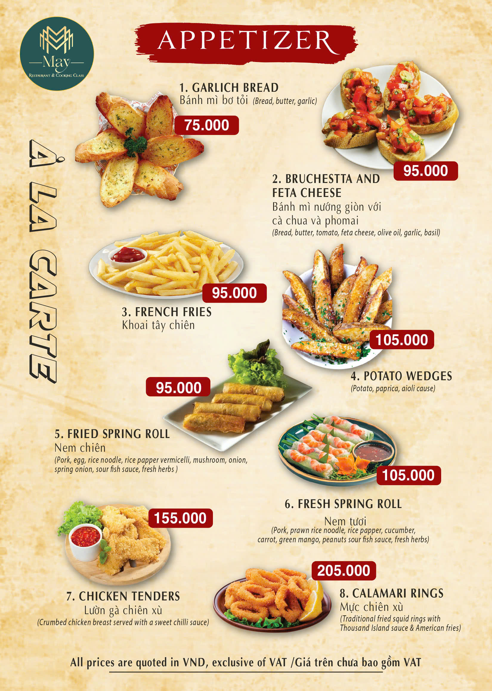 May Restaurant Menu